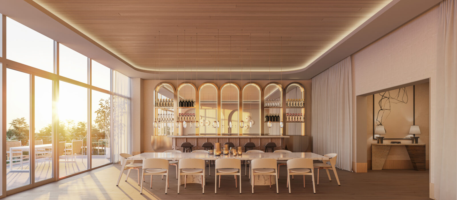 - Golf simulator studioLuxurious clubroom with bar, billiards room, catering kitchen, and media center
