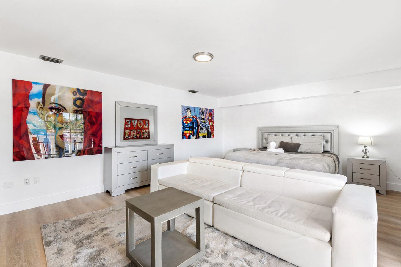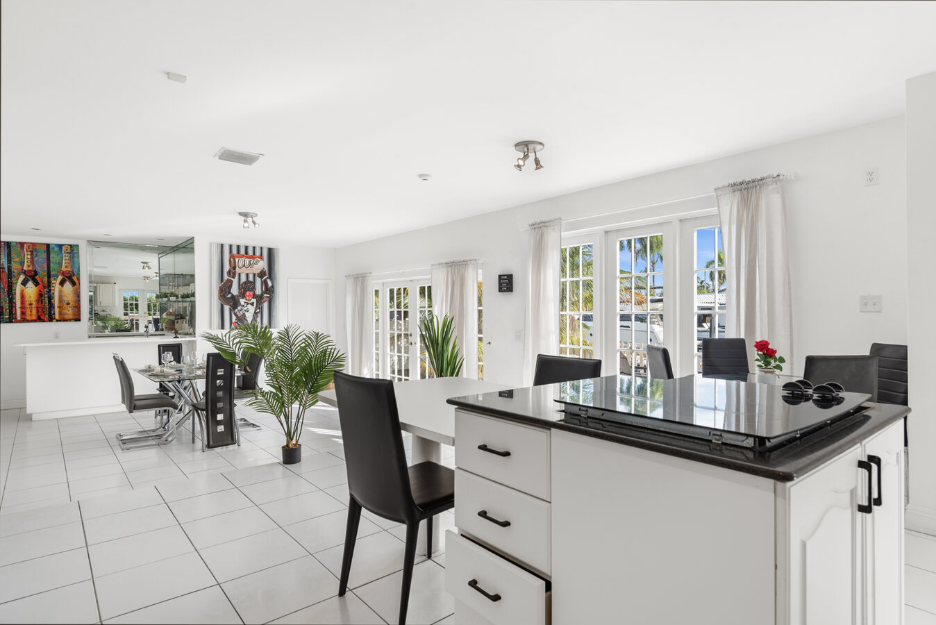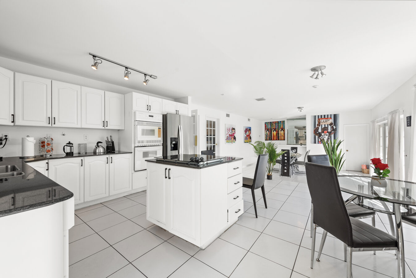 Nestled within a serene neighborhood, this elegant residence seamlessly blends traditional charm with contemporary aesthetics. Upon arrival, French doors open up to interiors that are equally captivating, awash in natural light and exuding a welcoming ambiance. One is immediately greeted by luminous marble floors that extend throughout the expansive living area. Modern artwork graces the walls, juxtaposed with meticulously chosen furnishings that exude sophistication. The home boasts six spacious bedrooms, four pristine bathrooms, with a particular emphasis on the luxurious master suite which offers a marble-finished bathroom as an oasis of relaxation replete with a Roman Jacuzzi Tub and private covered terrace.